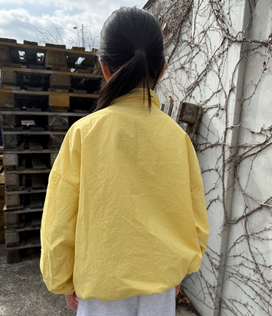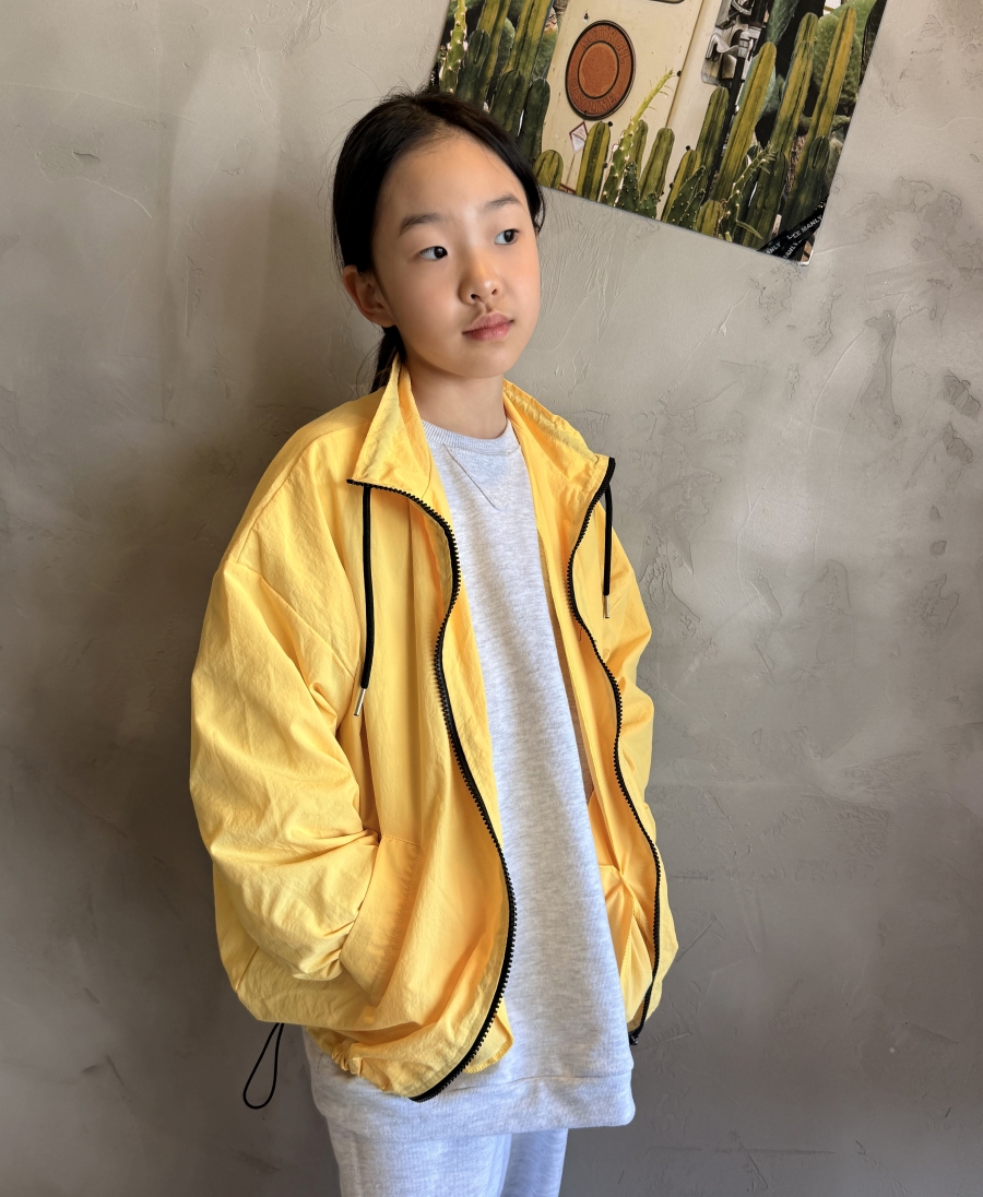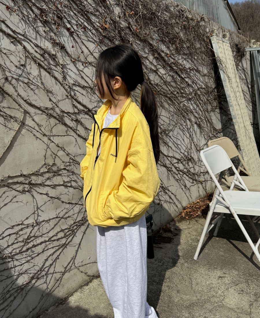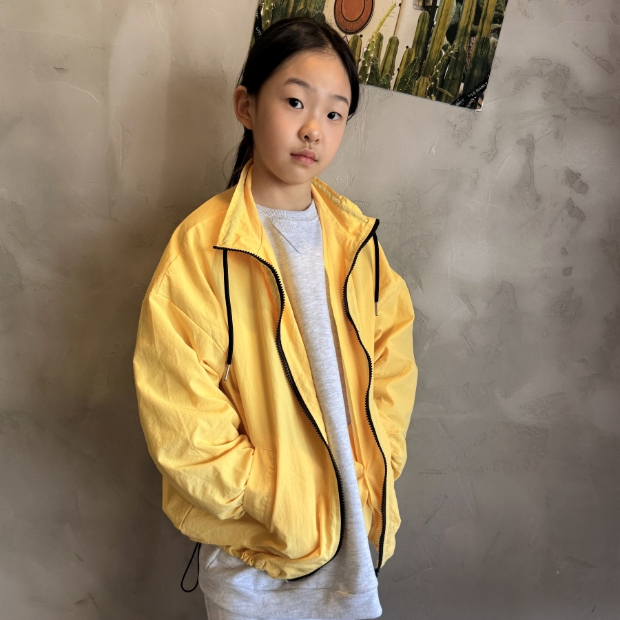 밝고 산뜻한 노랑, 파랑 컬러의 봄 바람막이 점퍼로