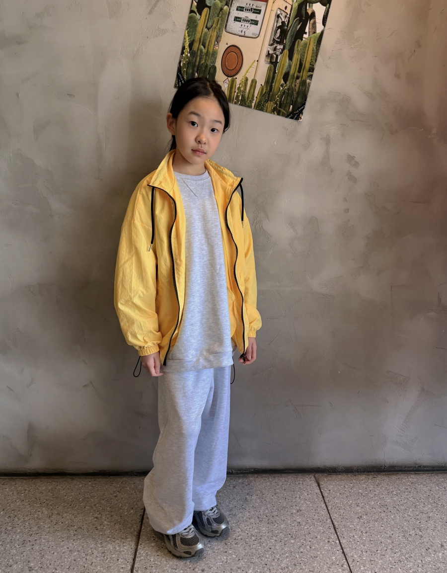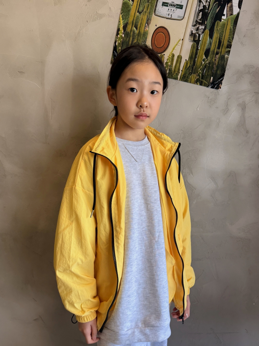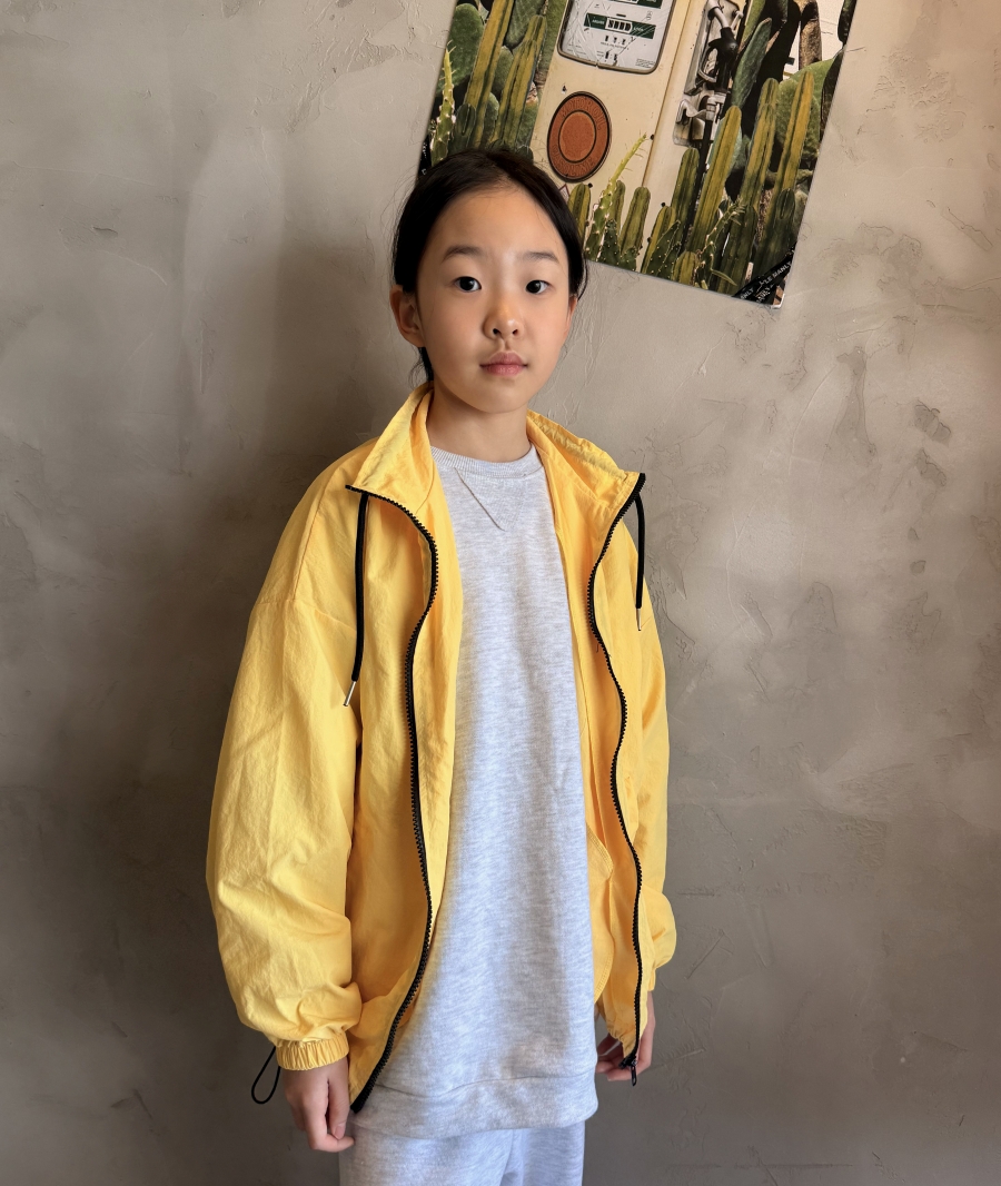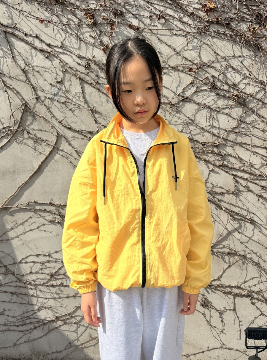 밝고 산뜻한 노랑, 파랑 컬러의 봄 바람막이 점퍼로
