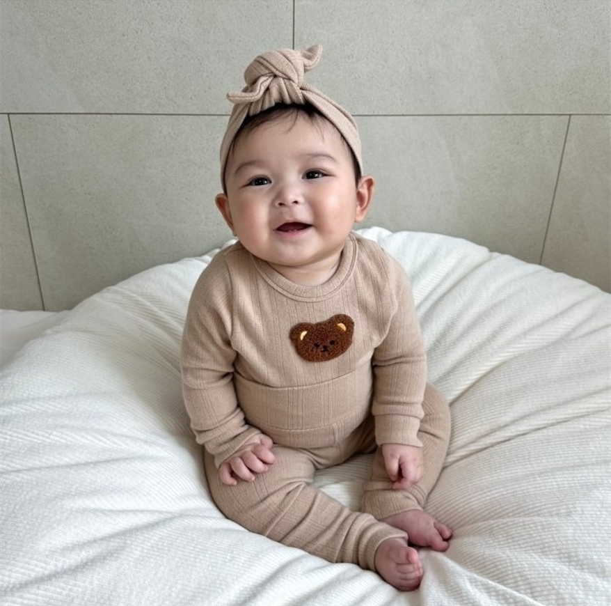쫀쫀하면서도 편안한 소재로 아기 피부에 자극 없이 부드럽게 감싸준답니다.