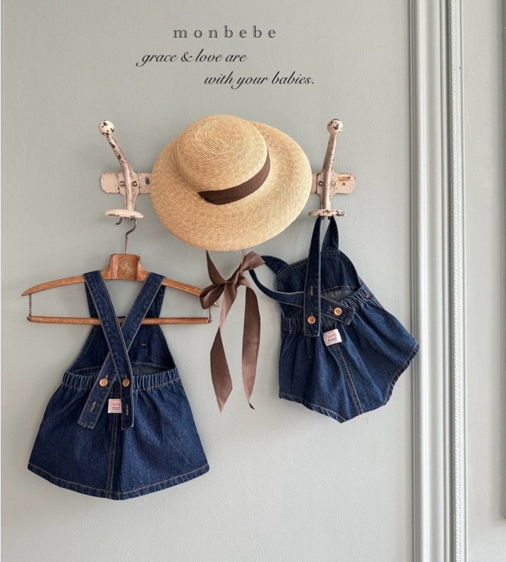울 아기들 사이즈에 앙증맞은 데님멜빵스커트와 같은 라인으로 나온