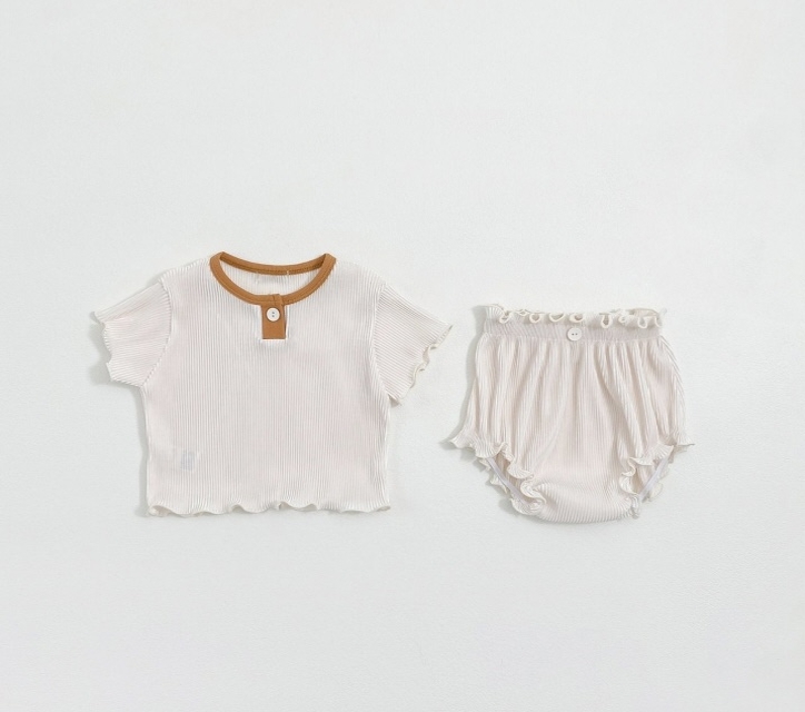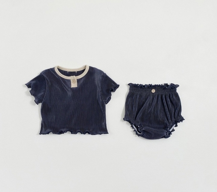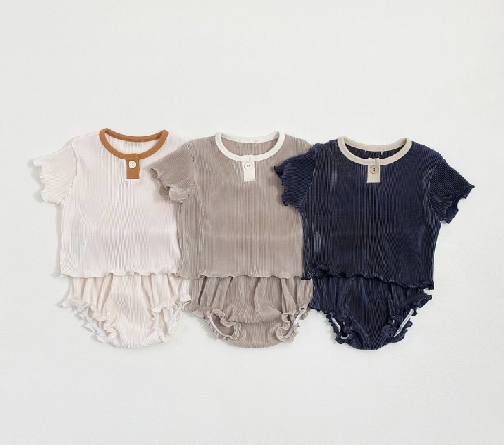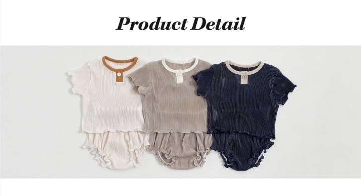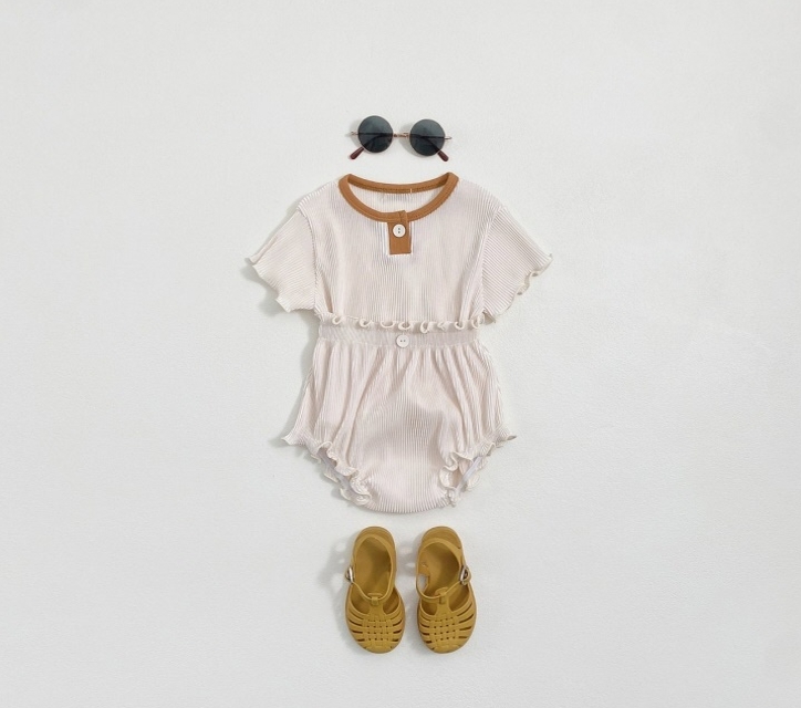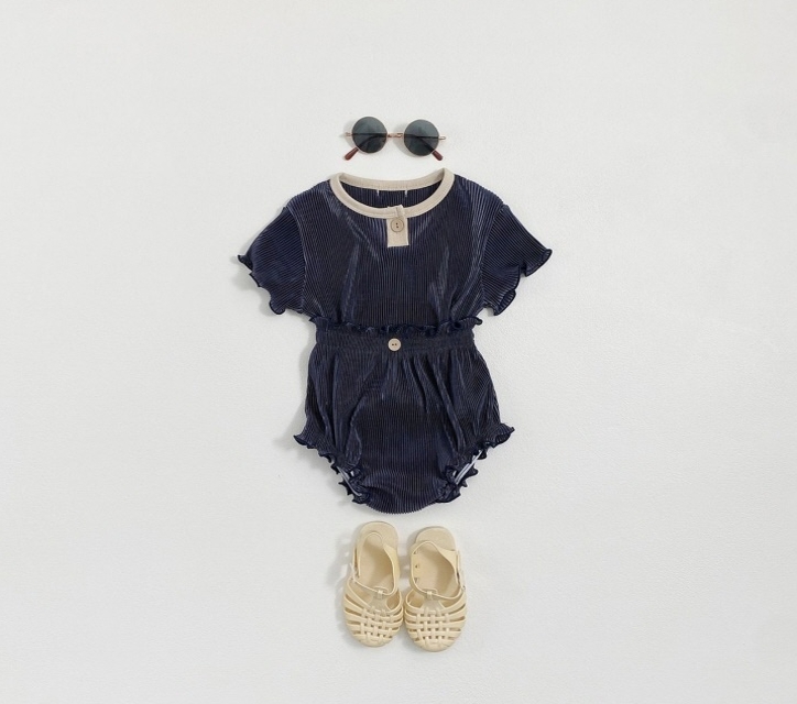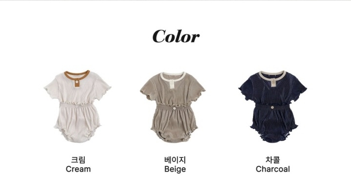 카라부분의 배색 포인트와 블루머 버튼 디테일로 세련된 베베룩을