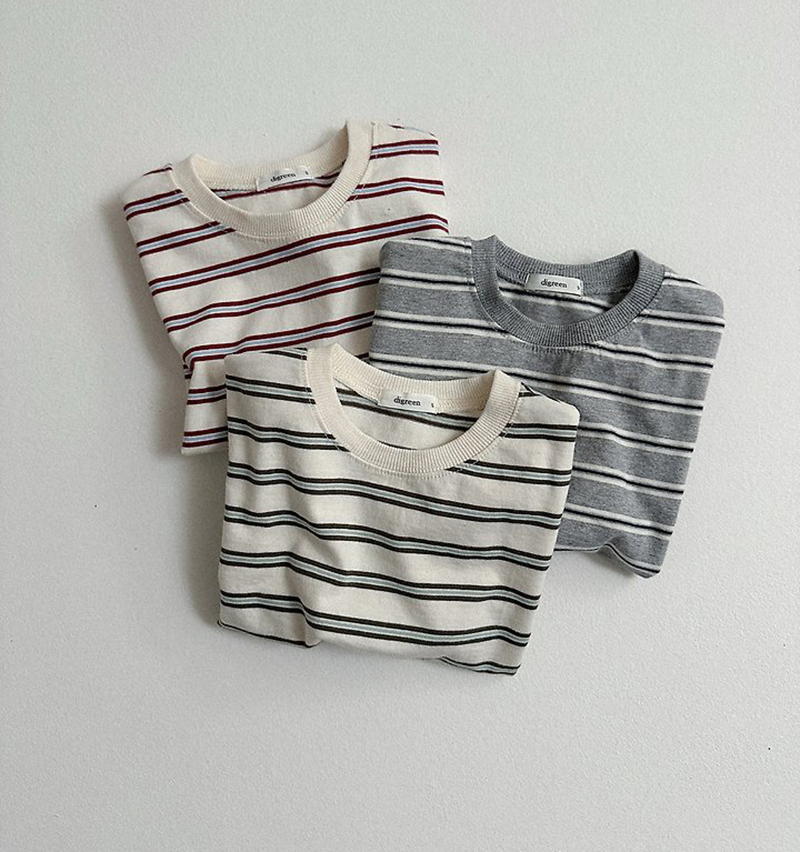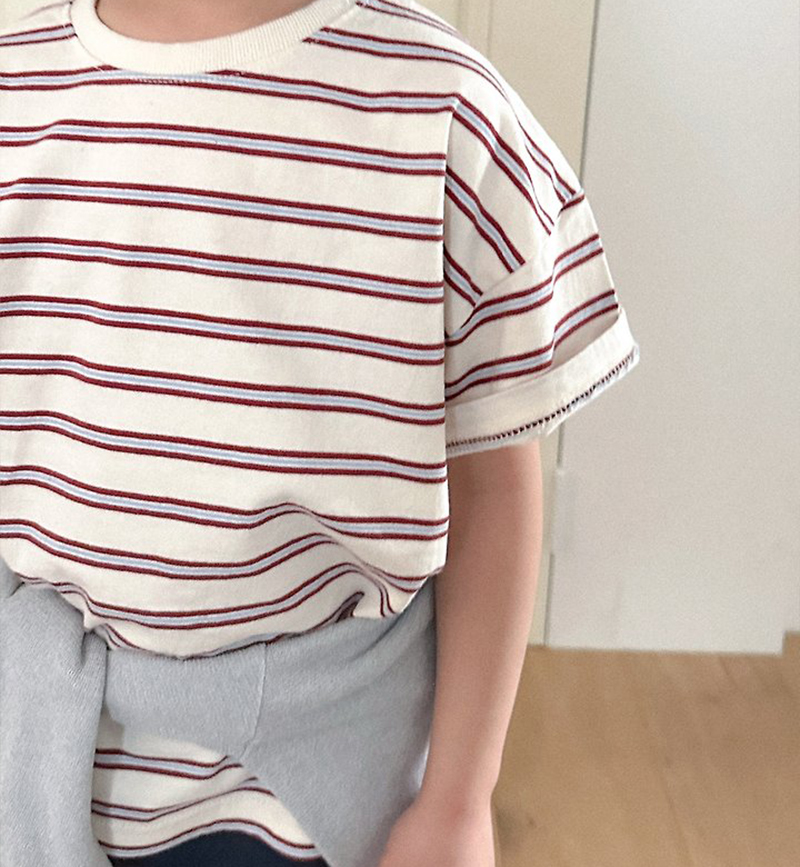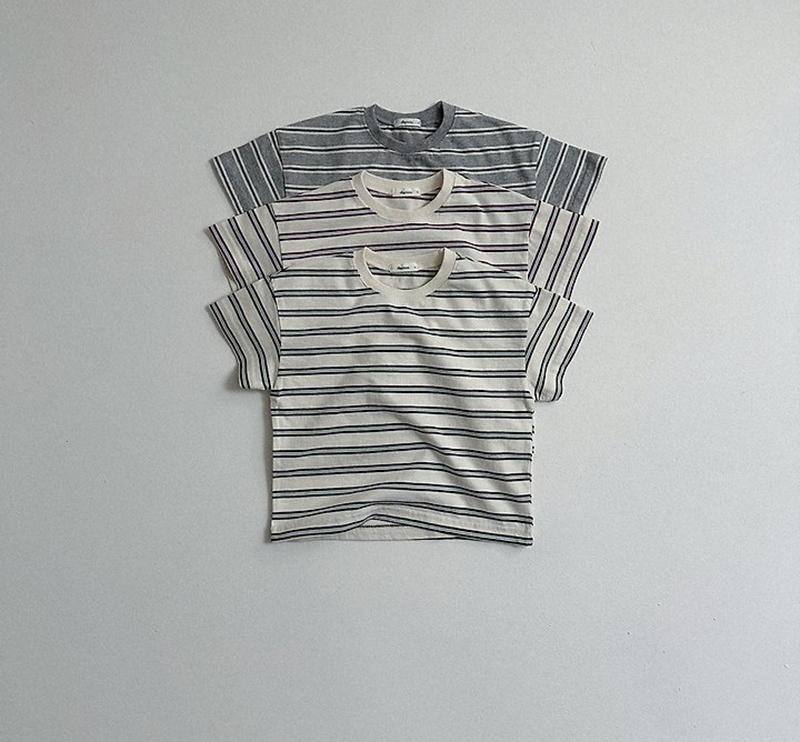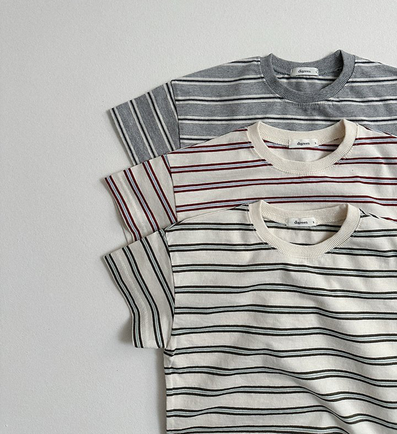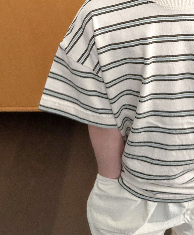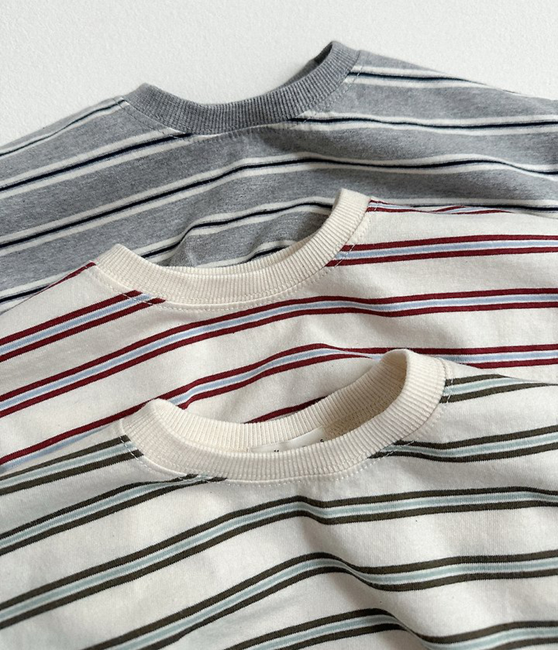 톤 다운 된 듯한 스트라이프로 만들어진 유아 여름 반팔티 멀티ST반팔티예요.