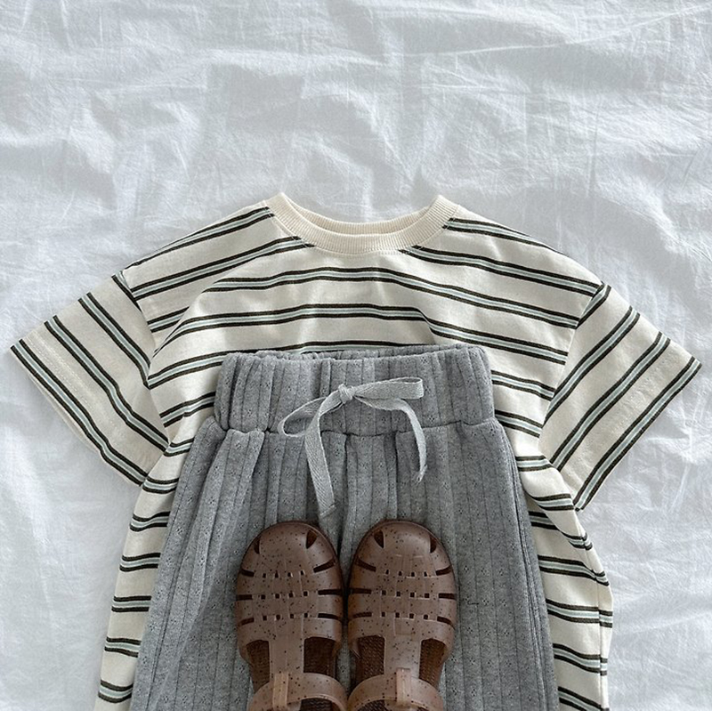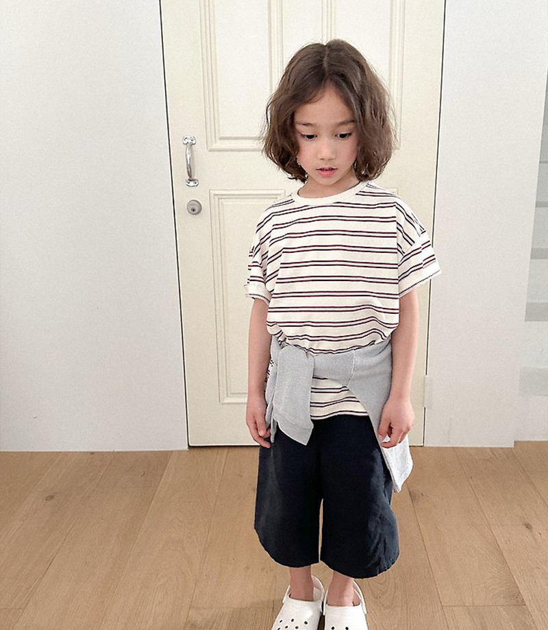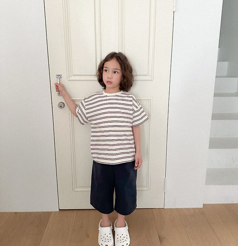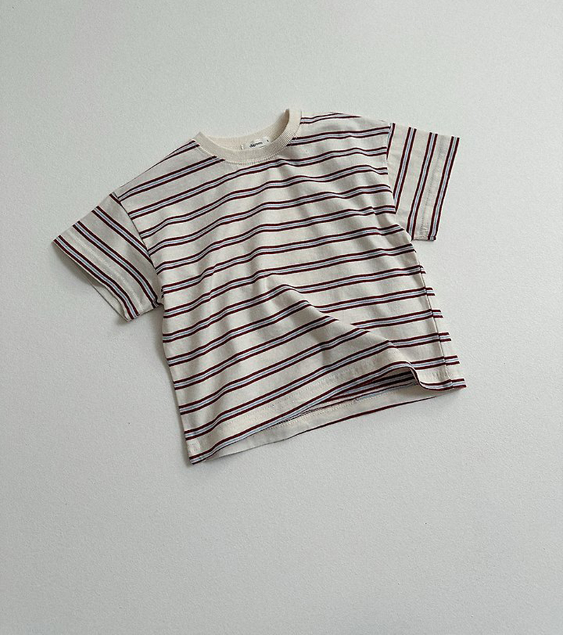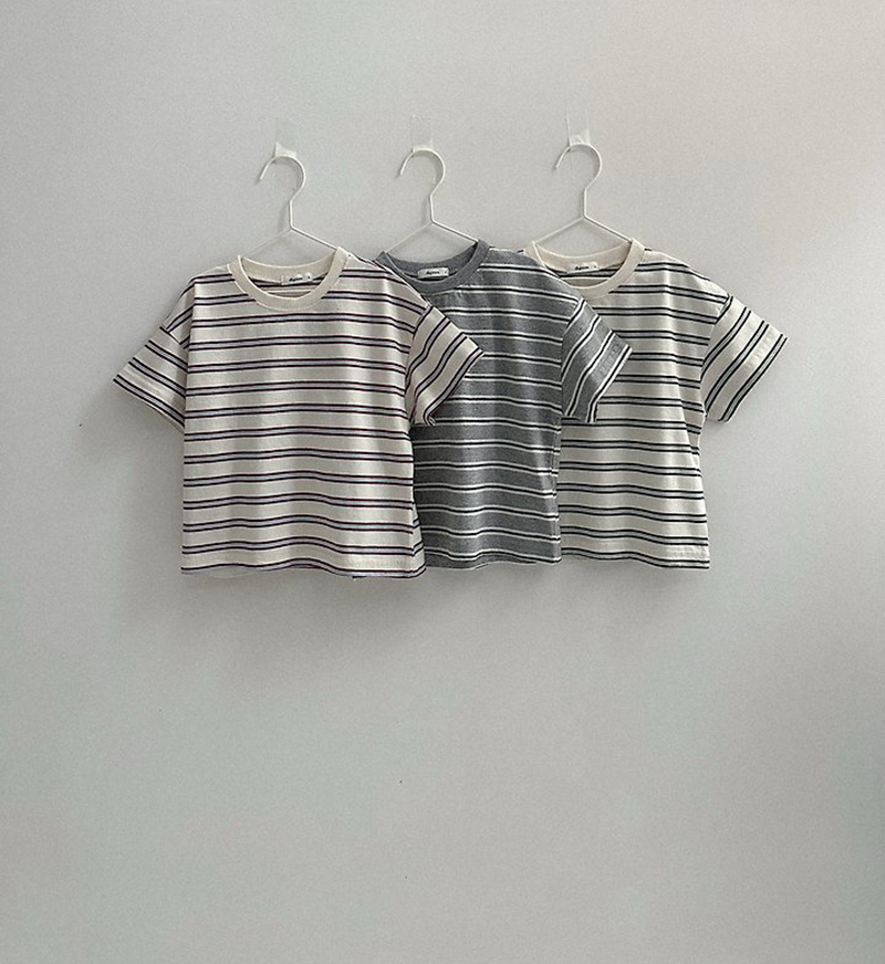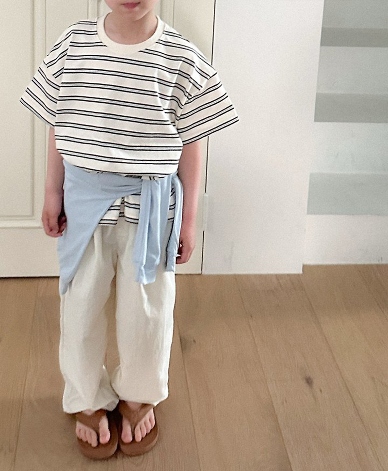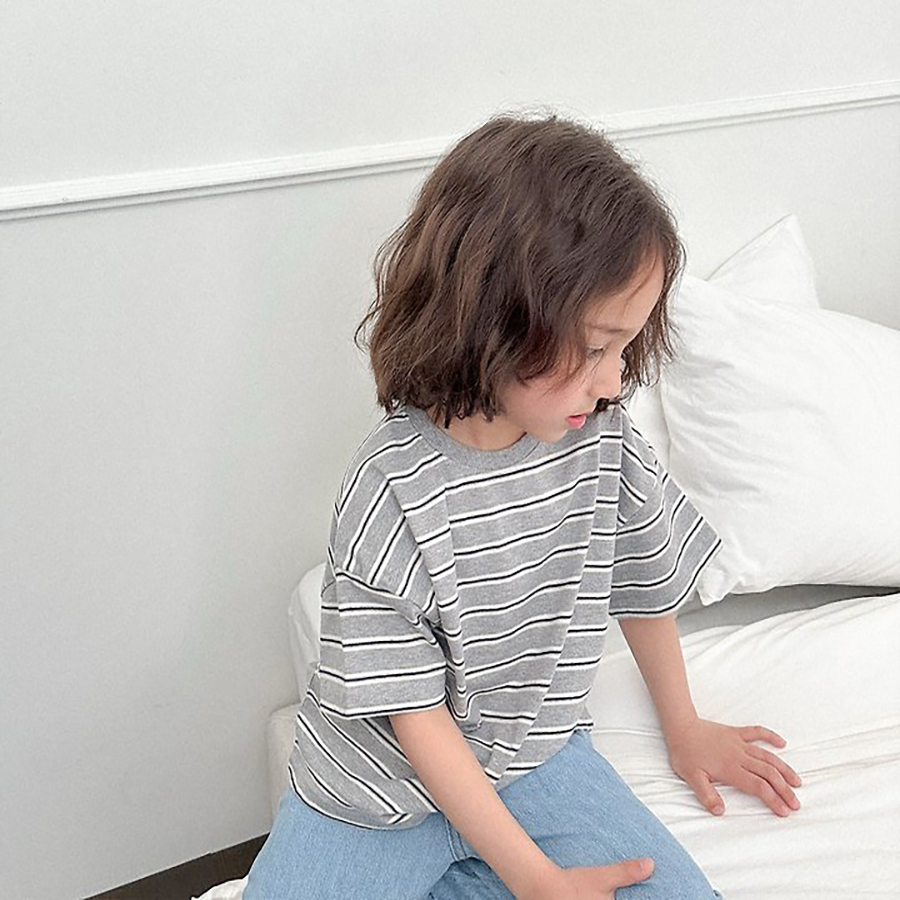 톤 다운 된 듯한 스트라이프로 만들어진 유아 여름 반팔티 멀티ST반팔티예요.