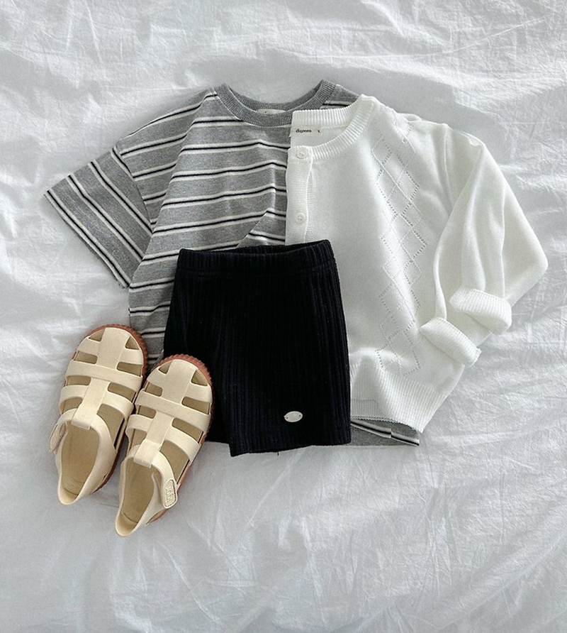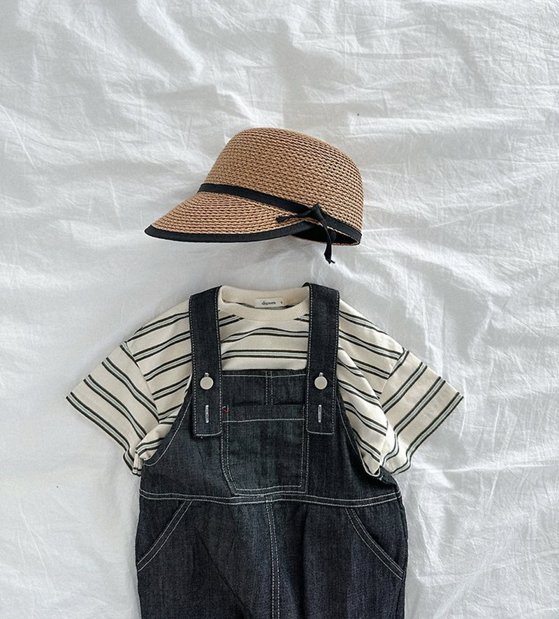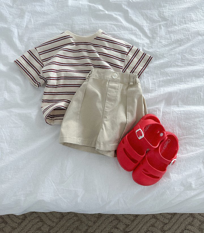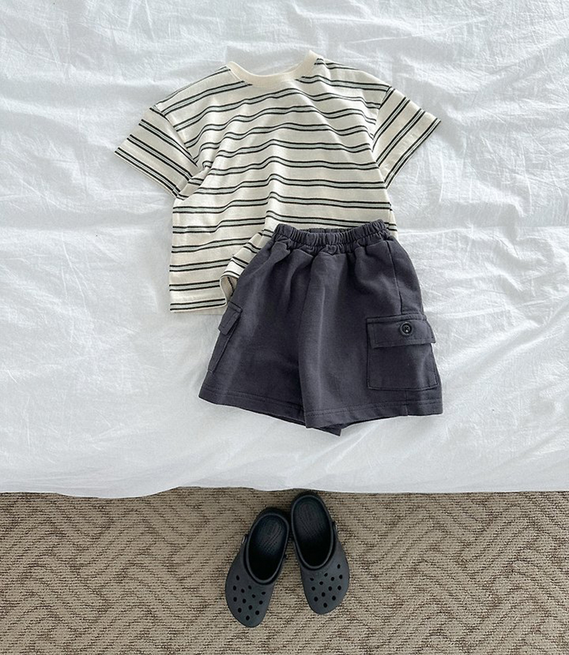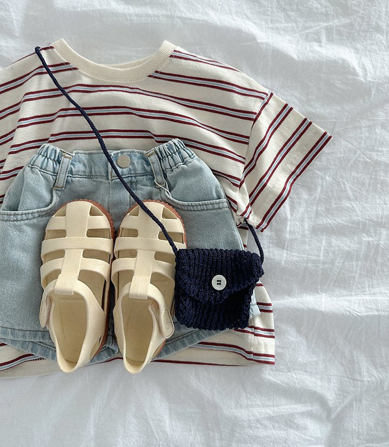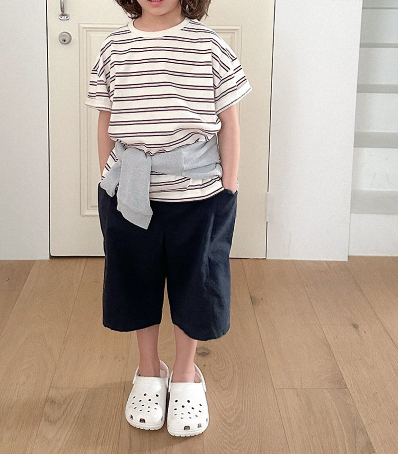 톤 다운 된 듯한 스트라이프로 만들어진 유아 여름 반팔티 멀티ST반팔티예요.