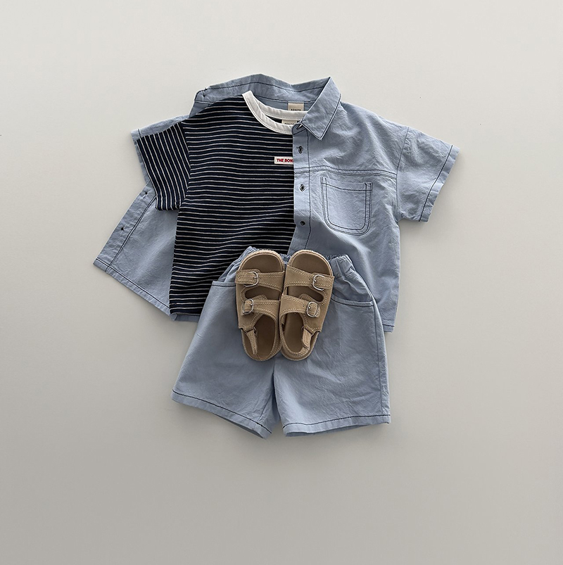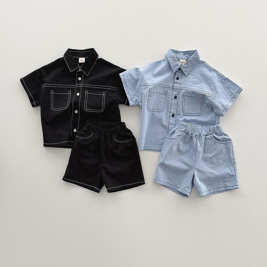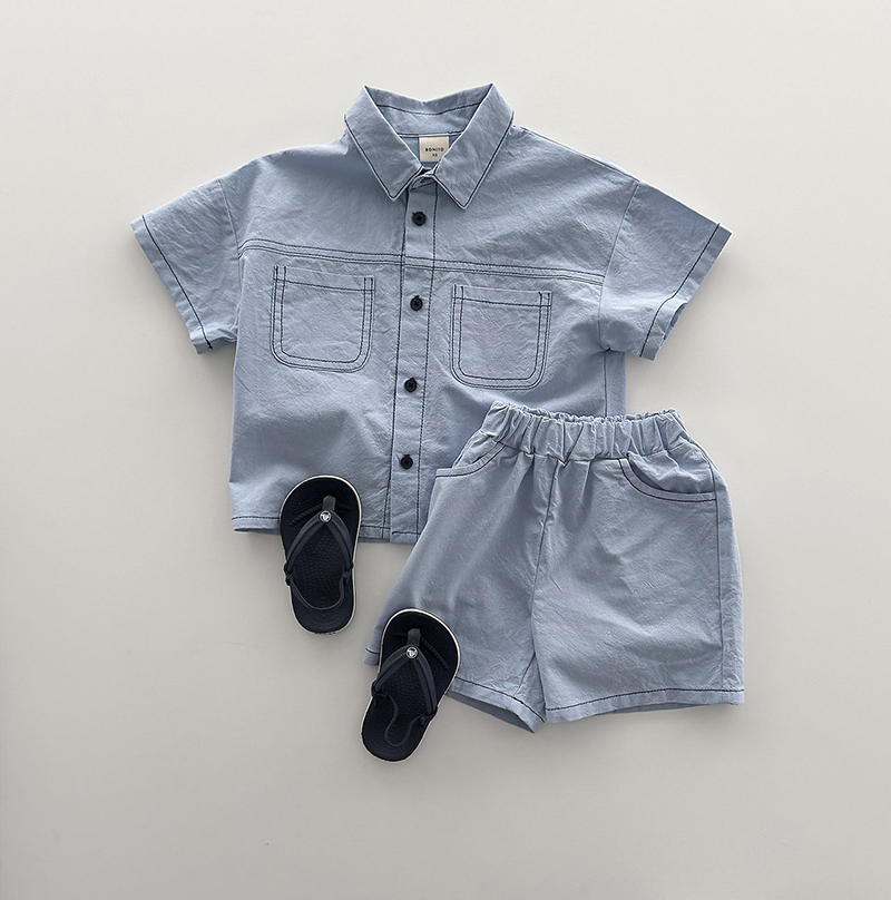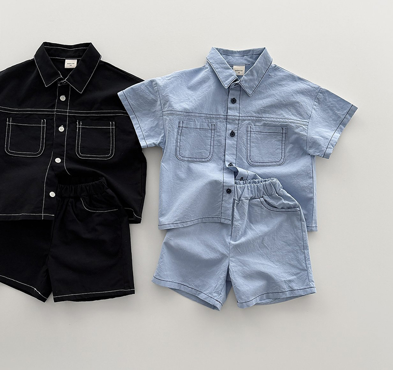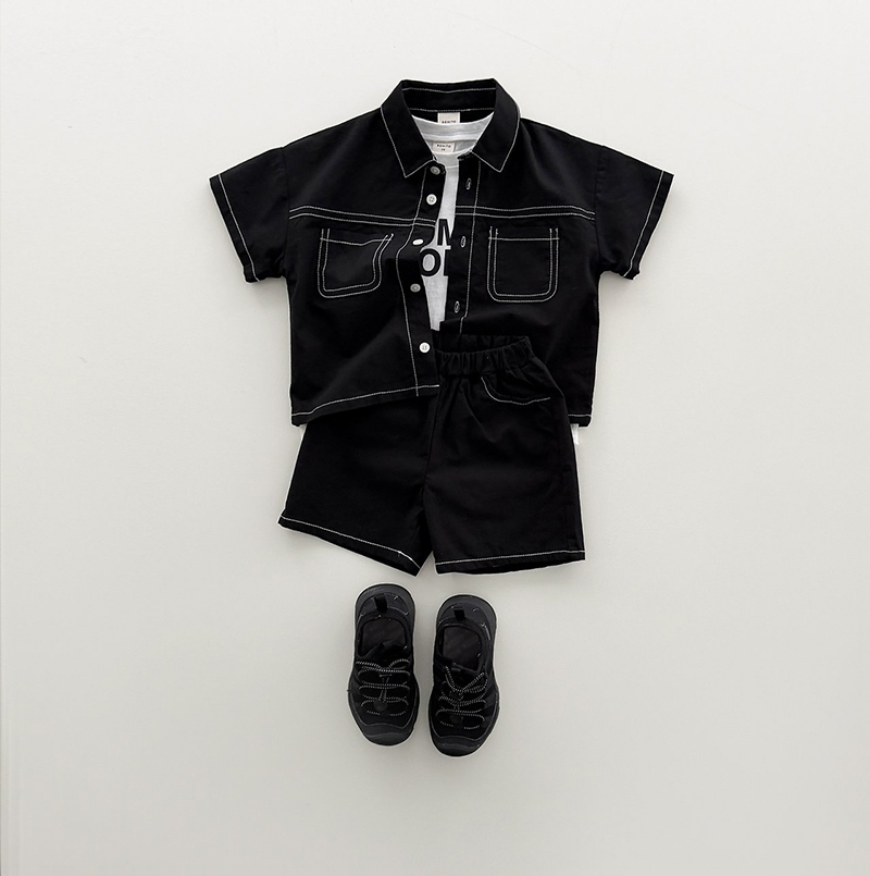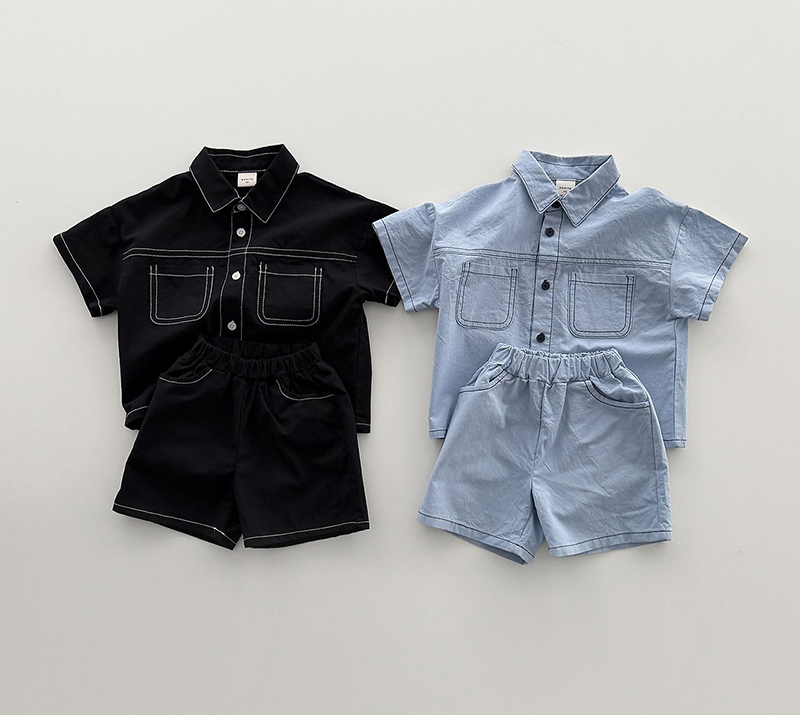 상의는 깔끔한 카라넥과 투포켓 디테일로