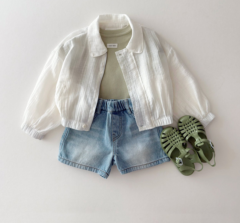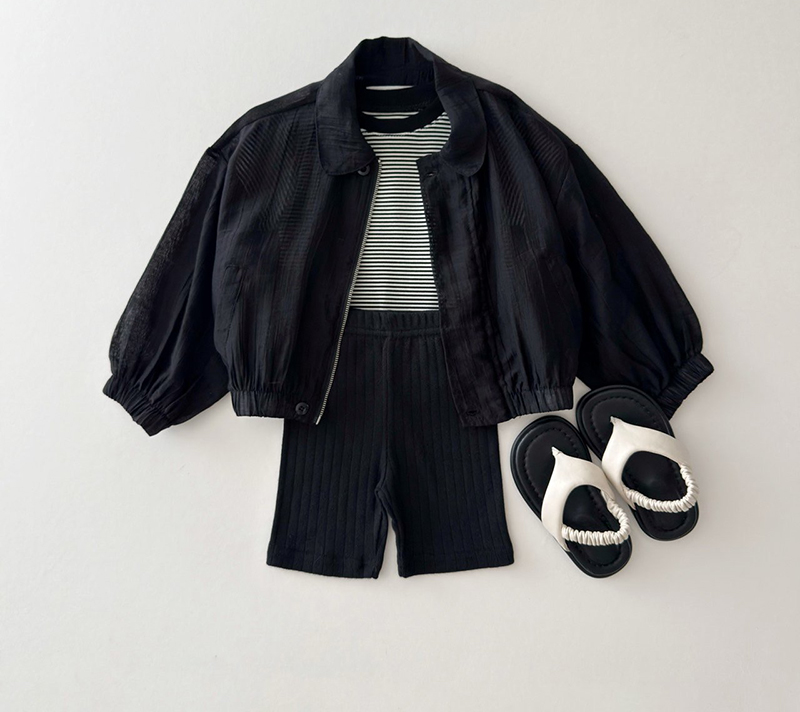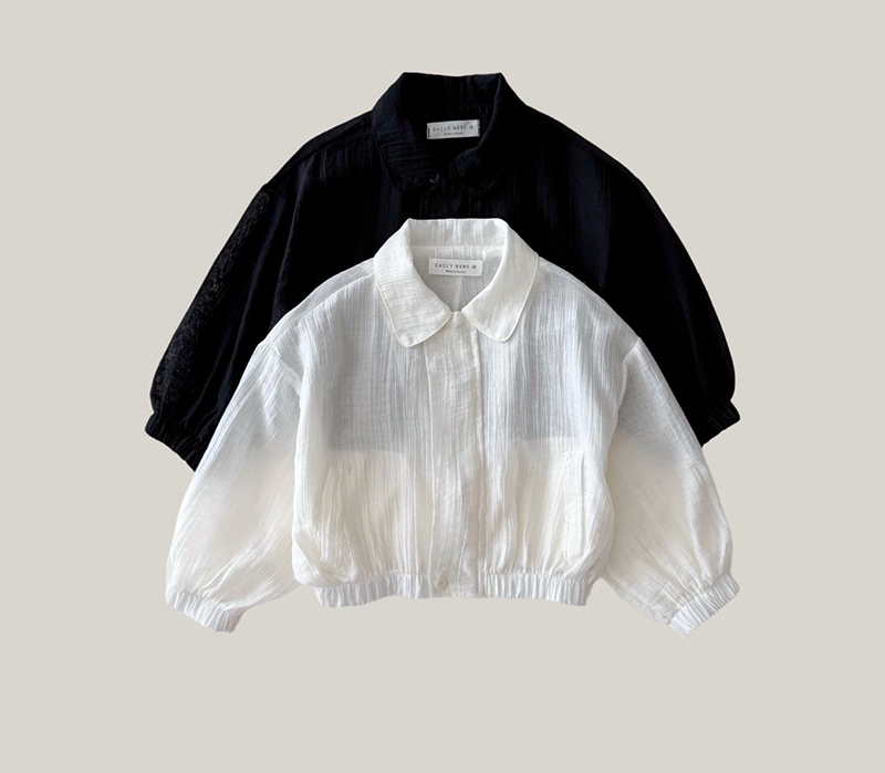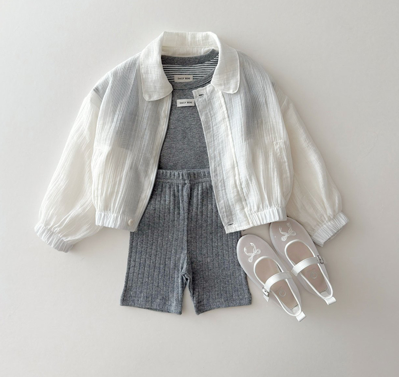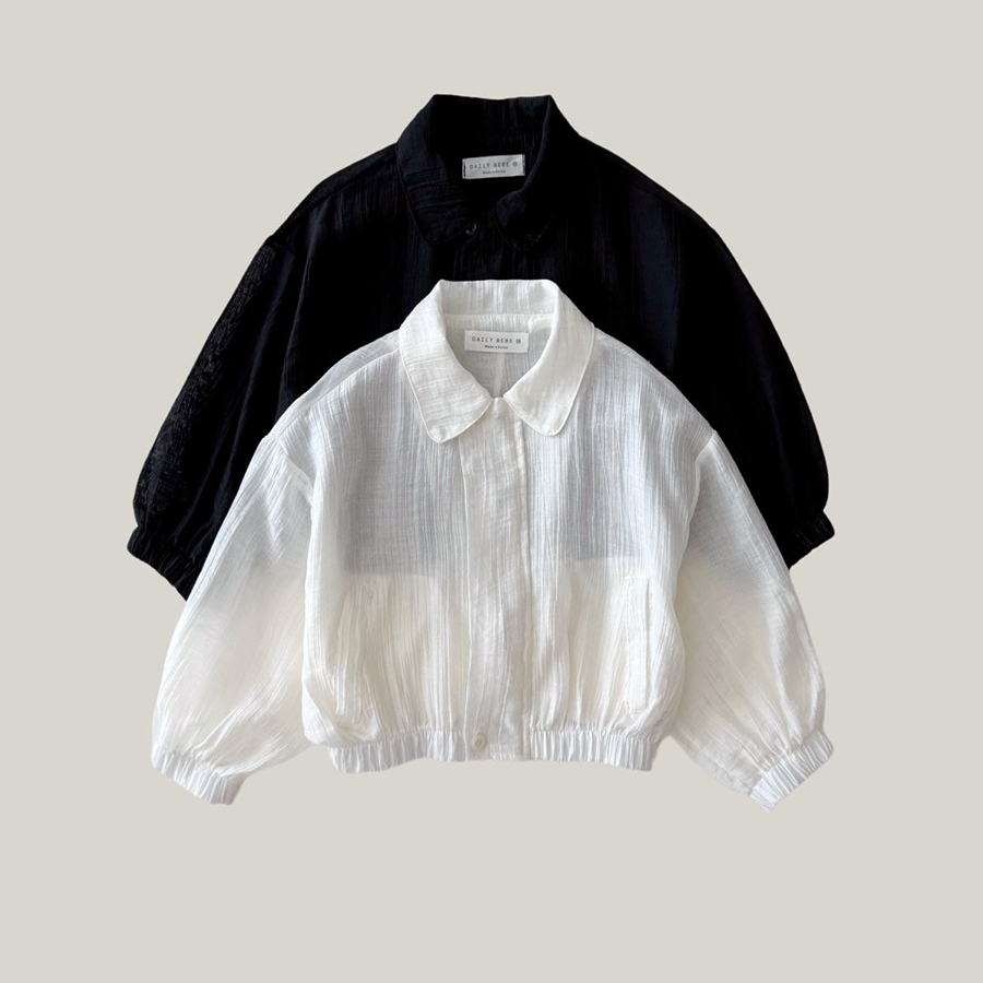 클래식한 느낌으로 깔끔한 핏이 이쁜 키즈 시스루 썸머자켓이예요.