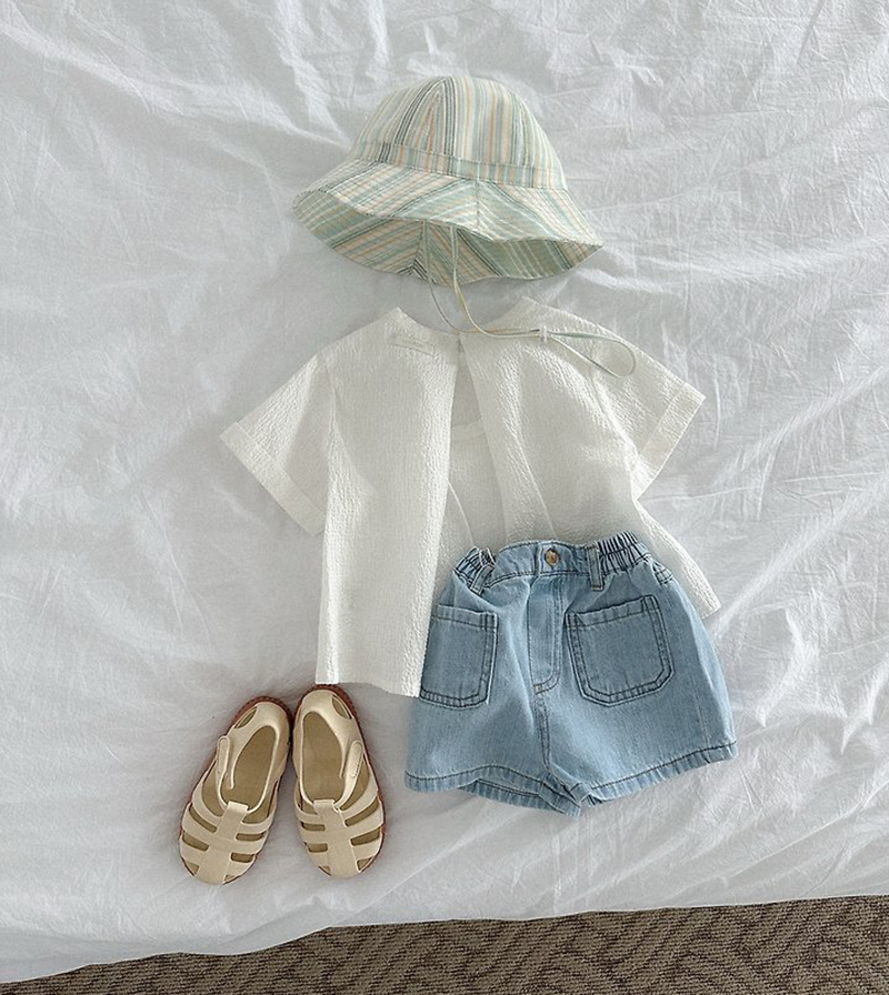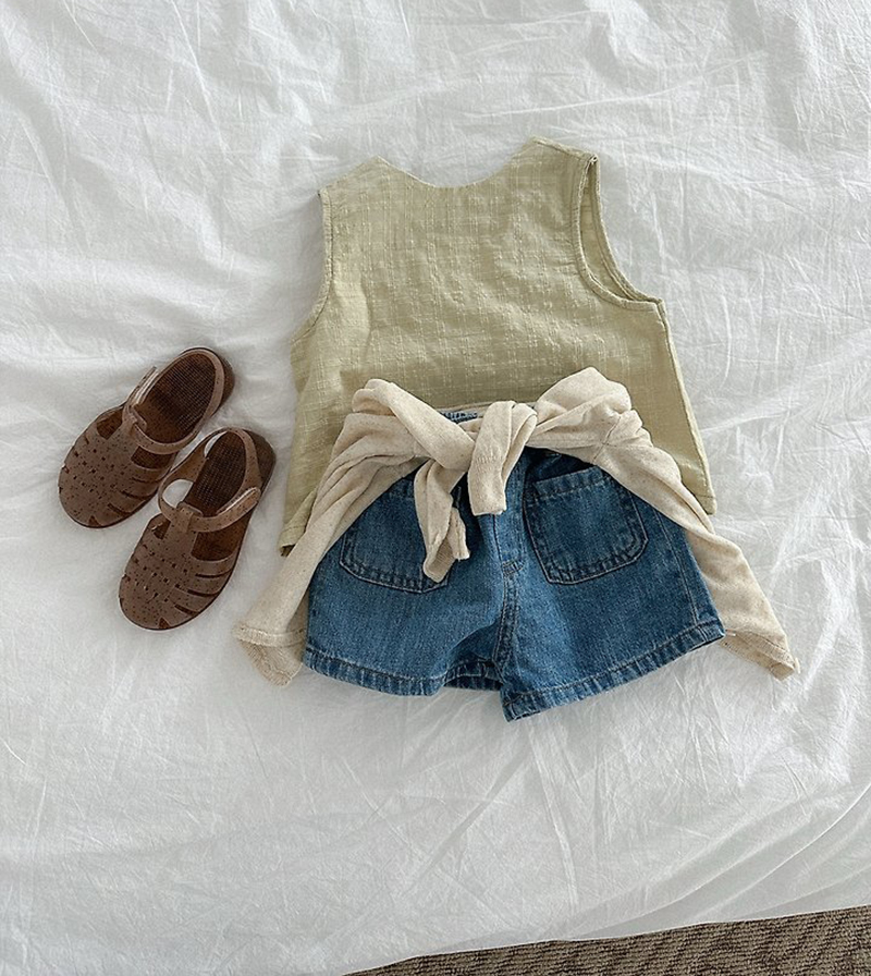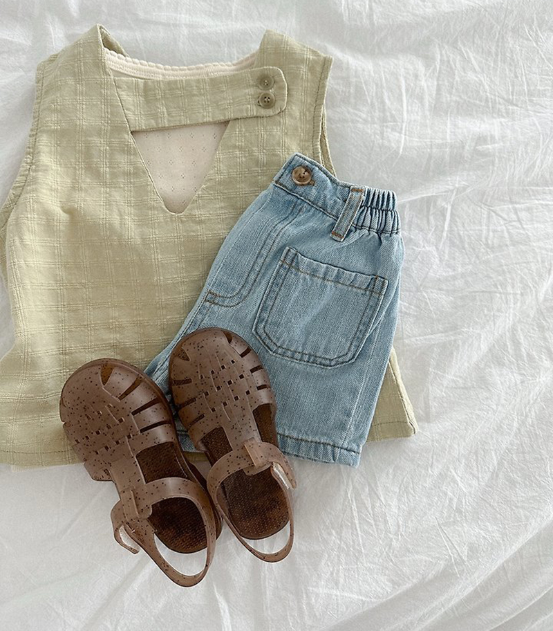 주머니 디데일 덕분에 베이직한 티에 샌들이나 조리로 코디를 완성해주어도