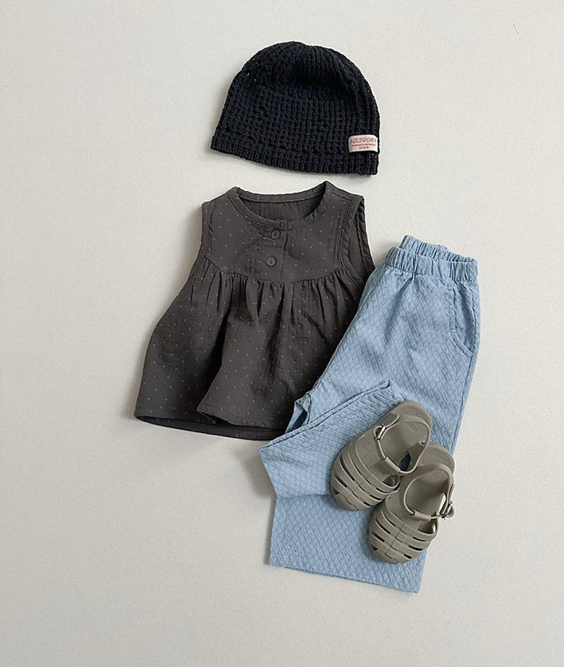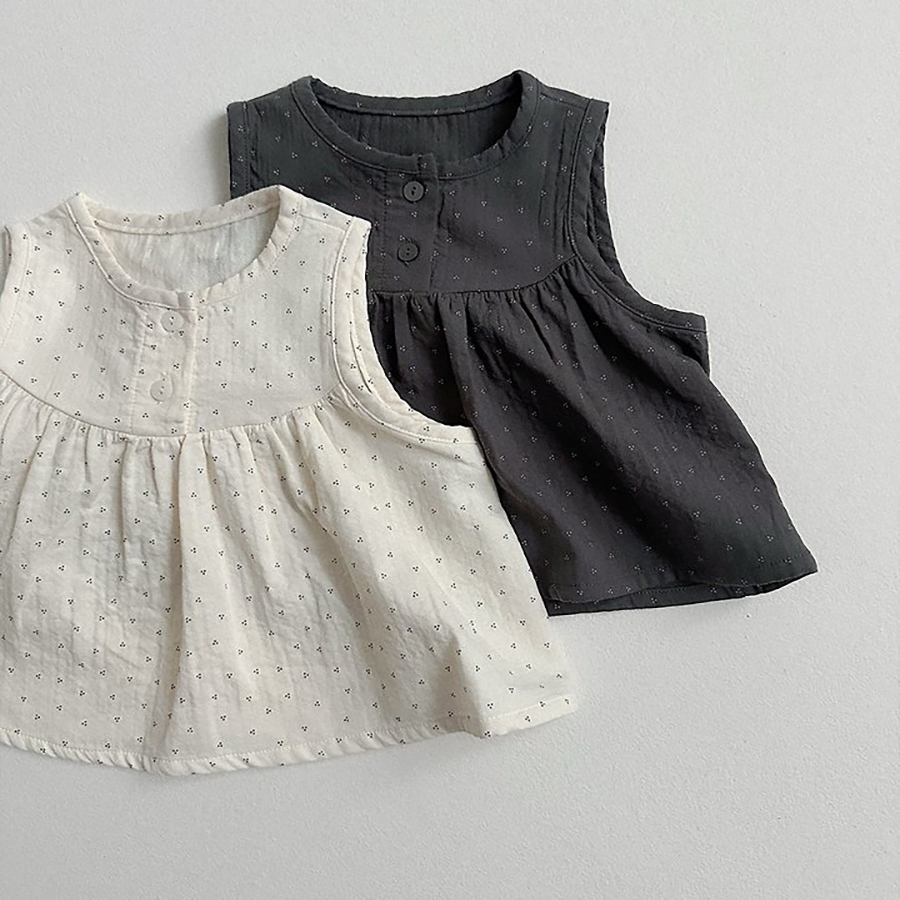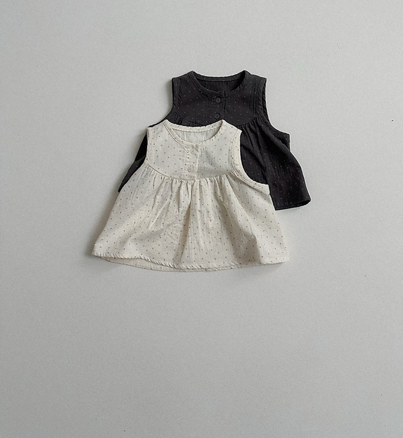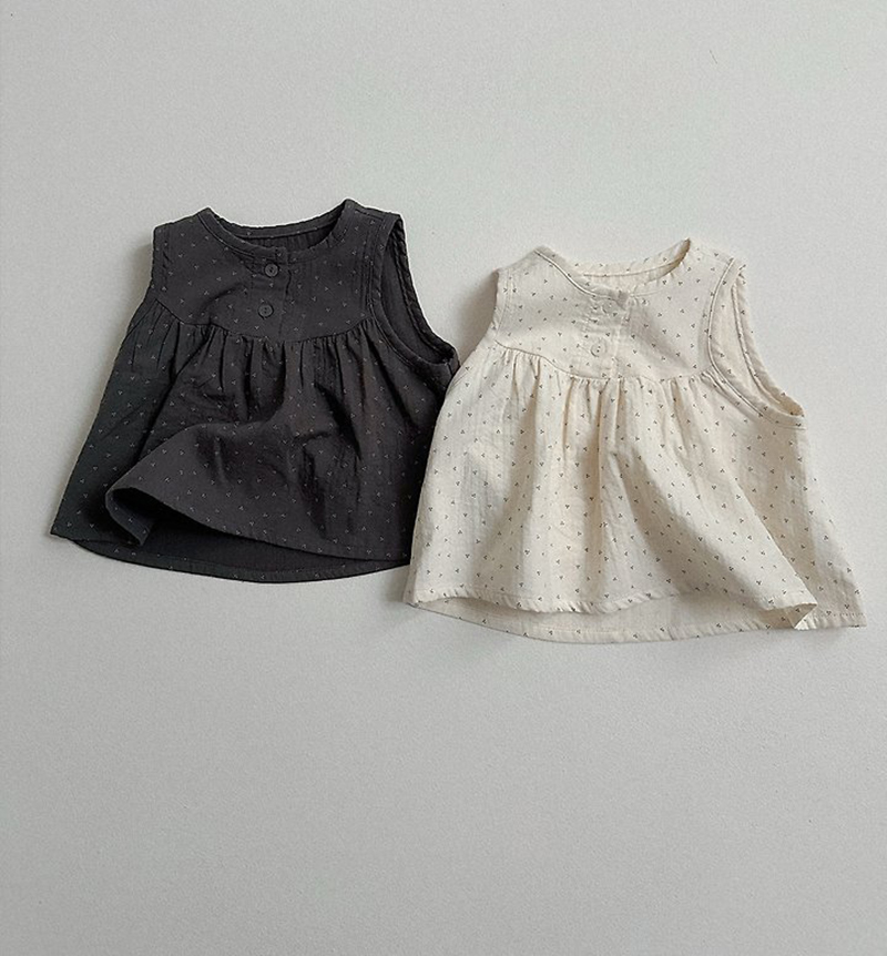 잔잔한 도트 패턴의 민소매 블라우스 소개해드려요~