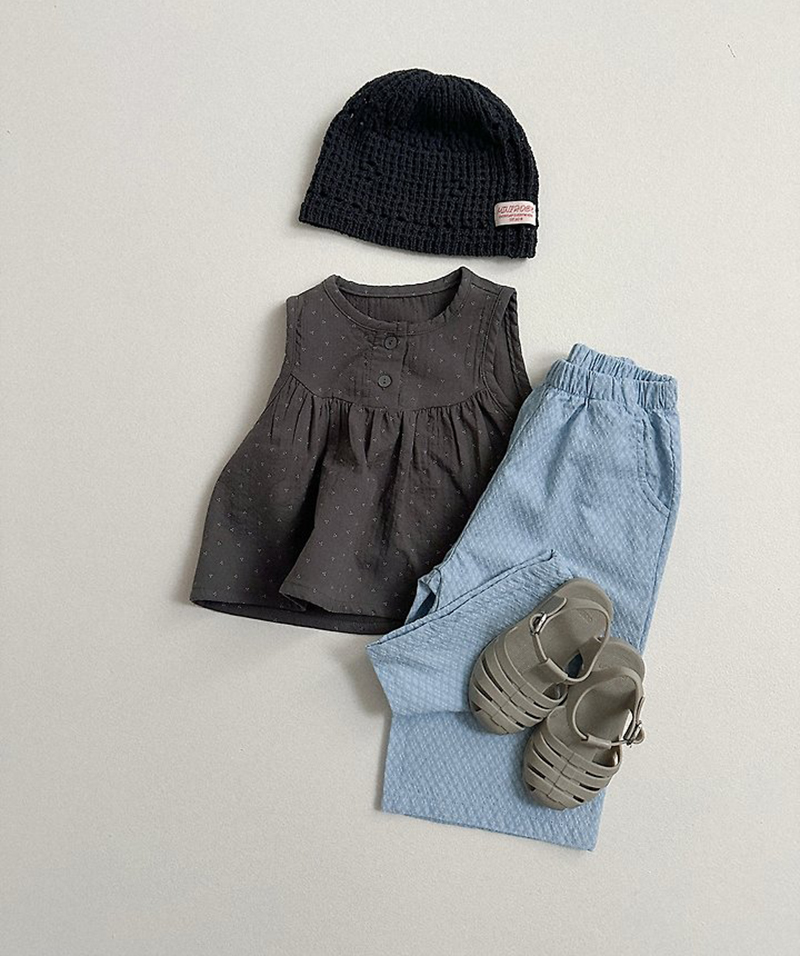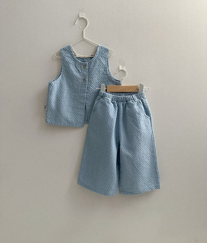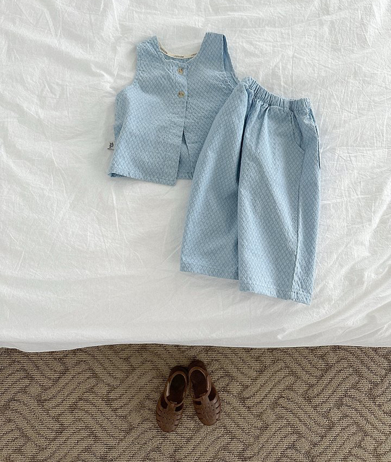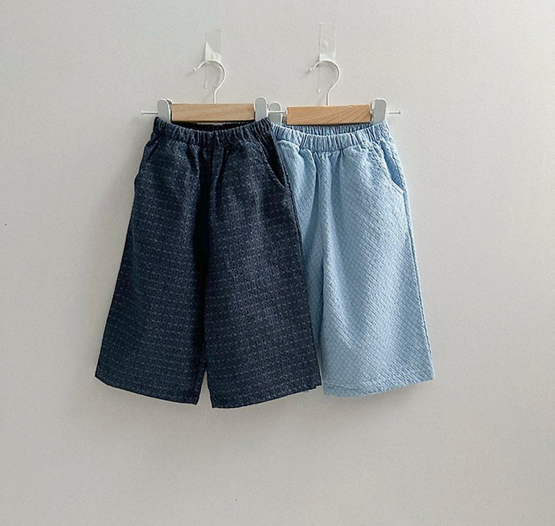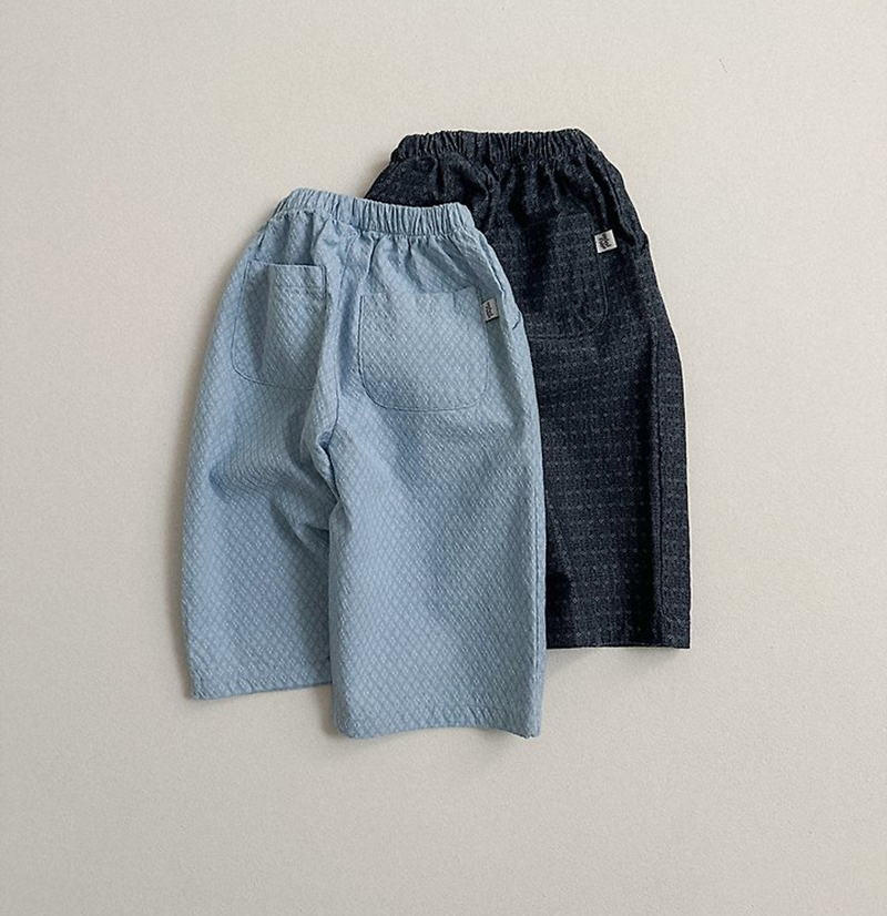입체감 있는 다이아 패턴 원단 유아여름팬츠랍니다.