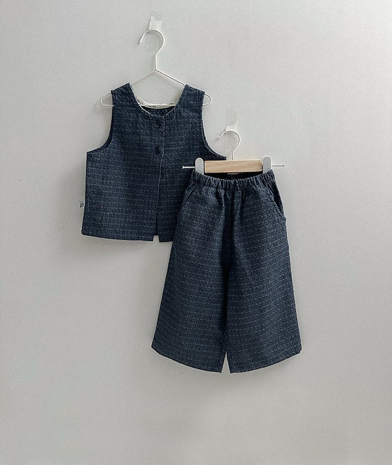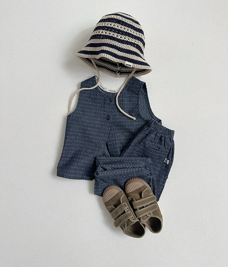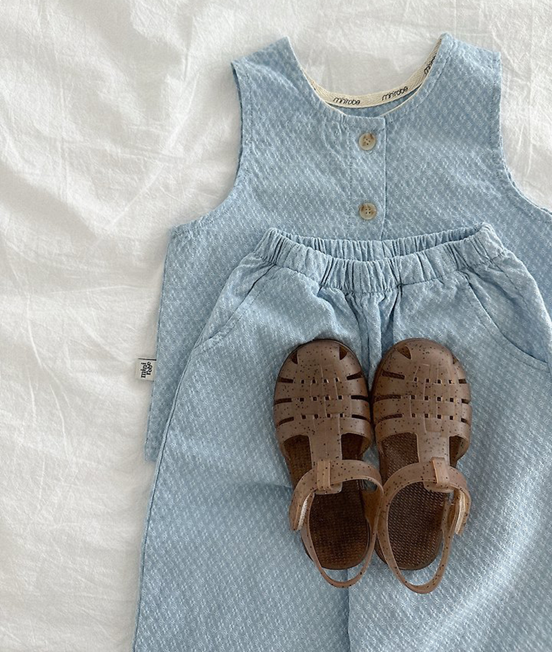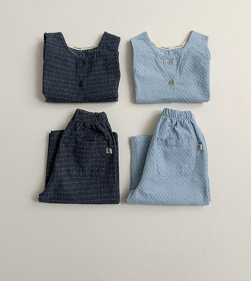 입체감 있는 다이아 패턴 원단 유아여름팬츠랍니다.