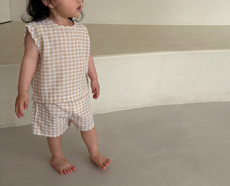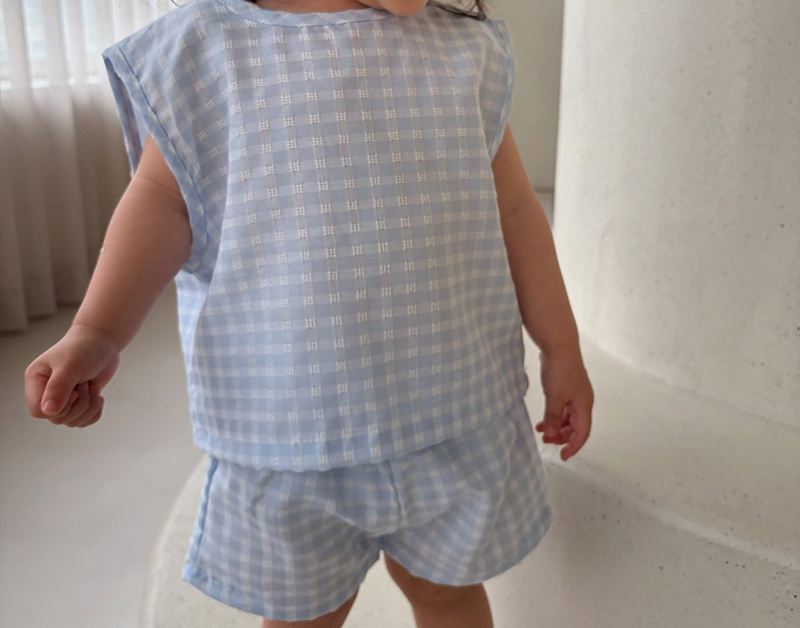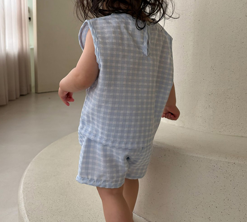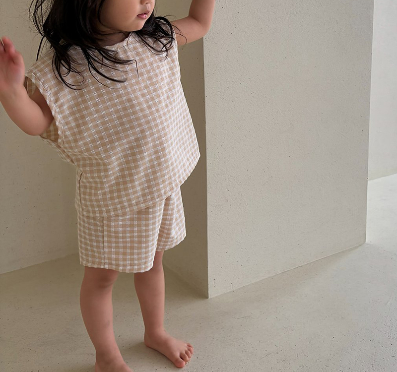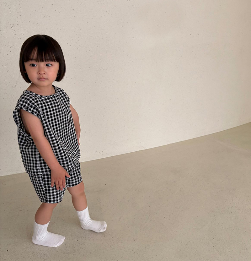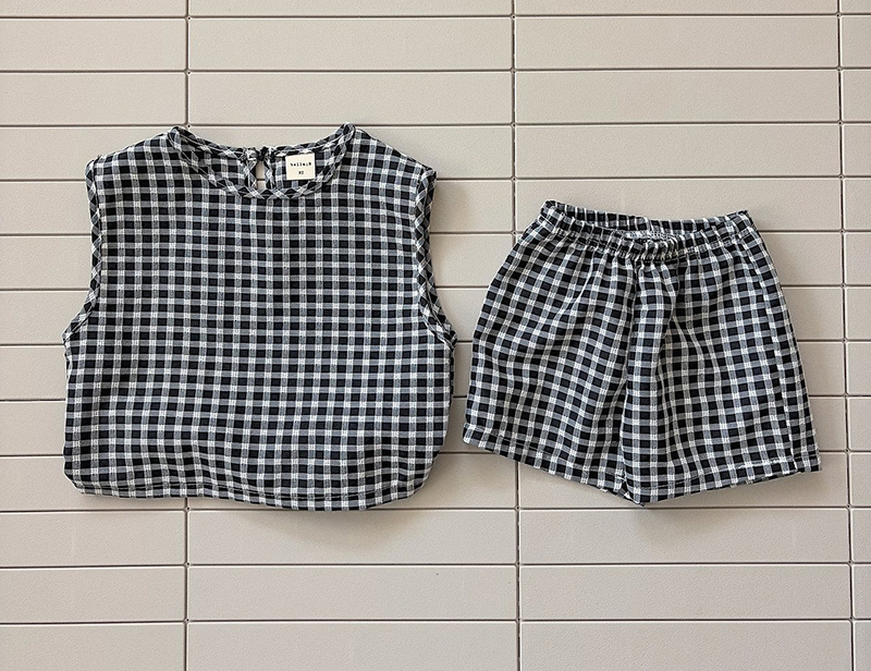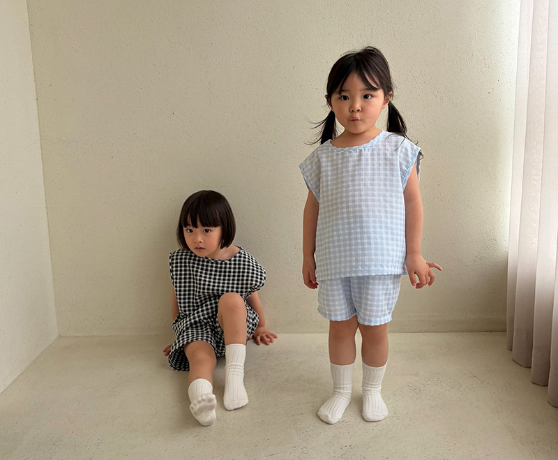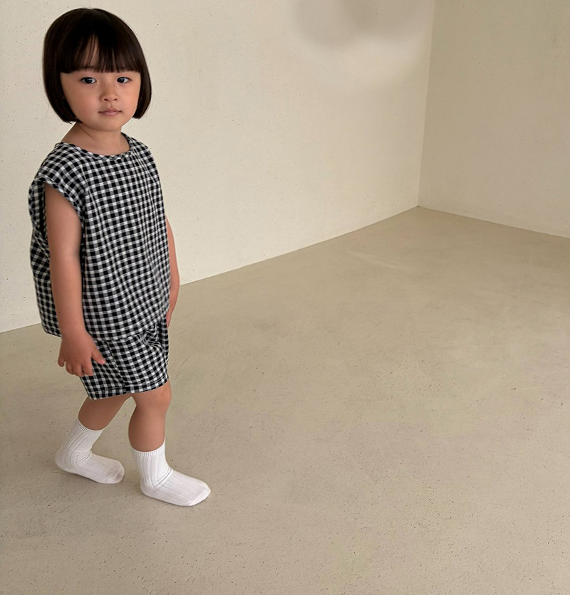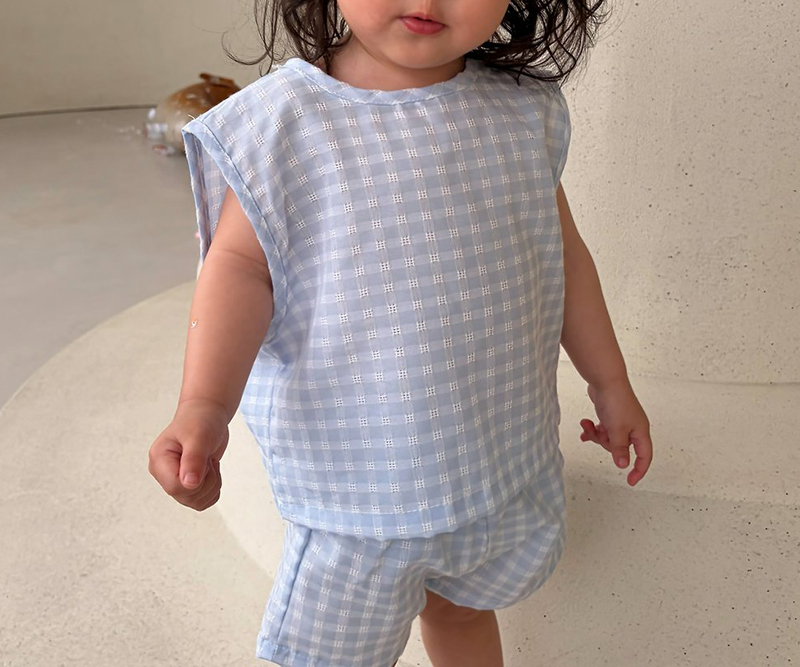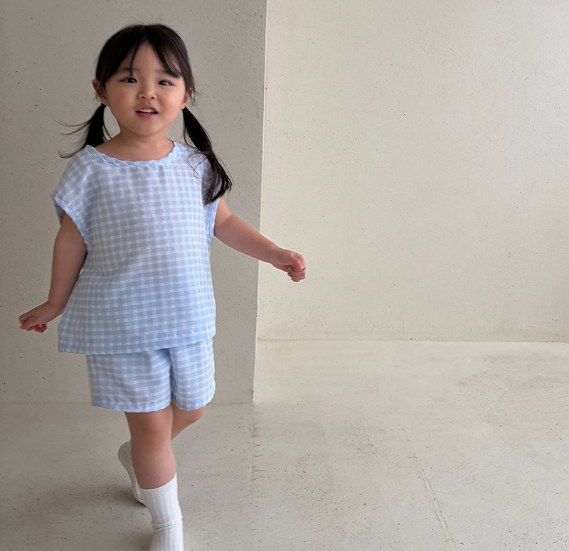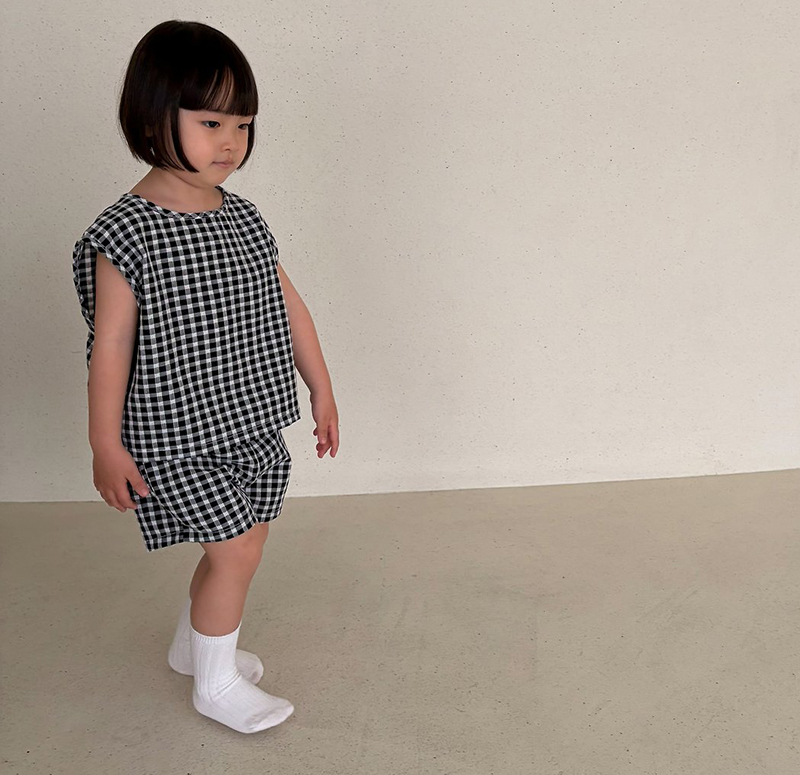 여름날 우리 아이를 더 시원하고 귀엽게 만들어줄잔잔한 체크 패턴 상하세트 소개해드려요 :)