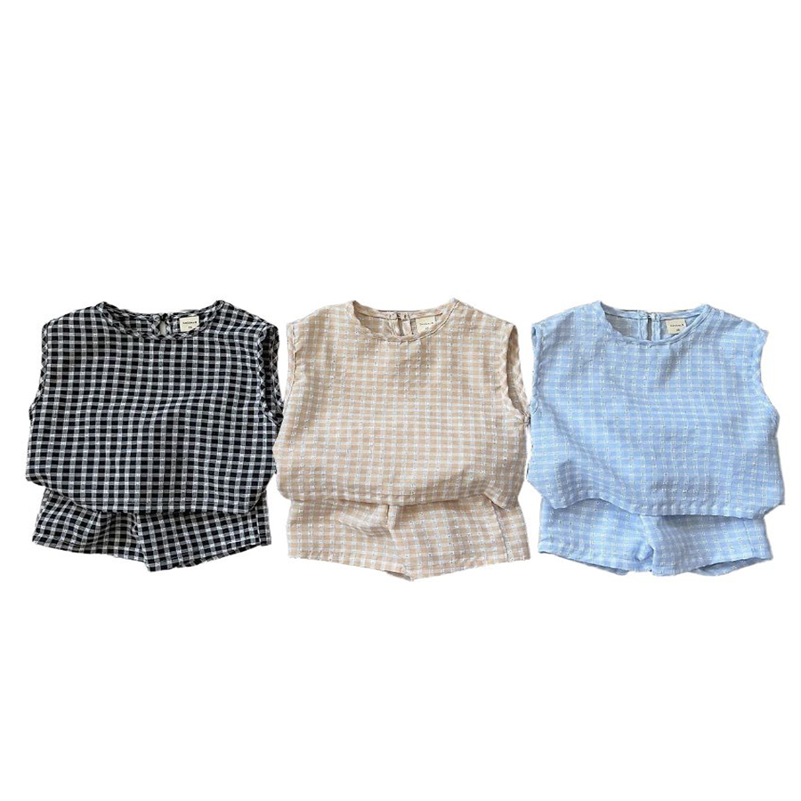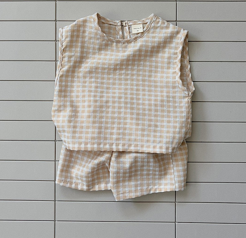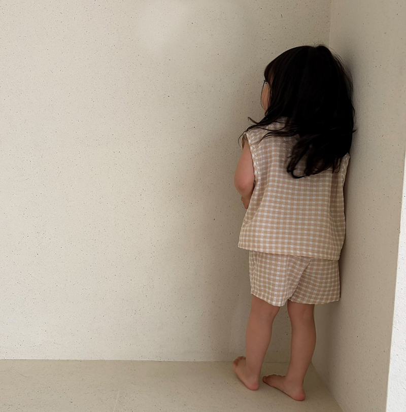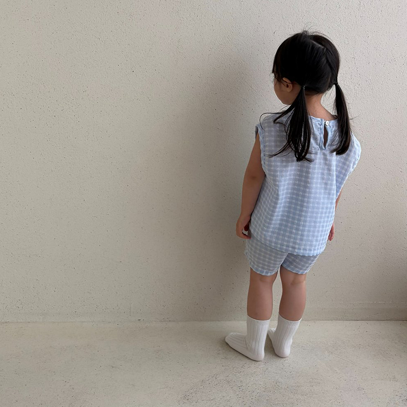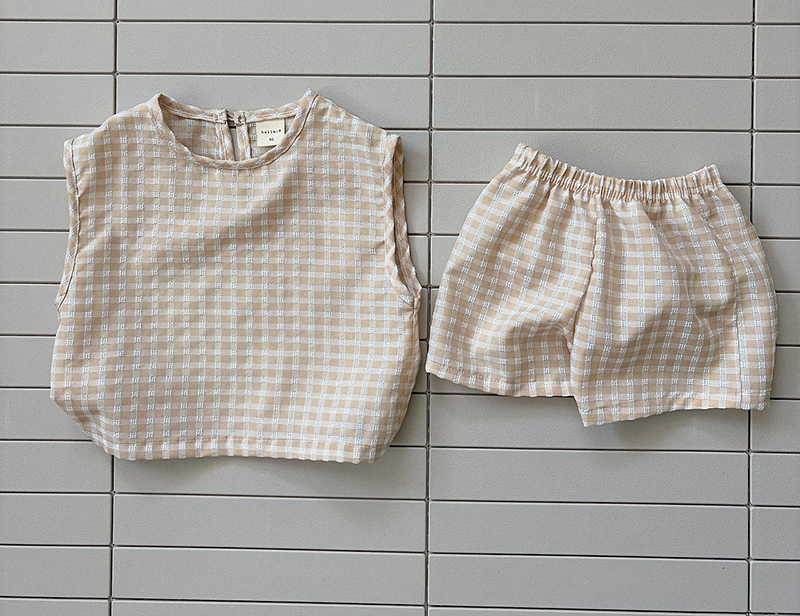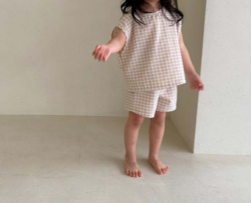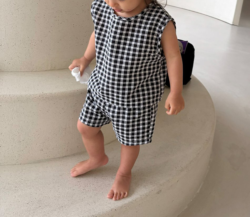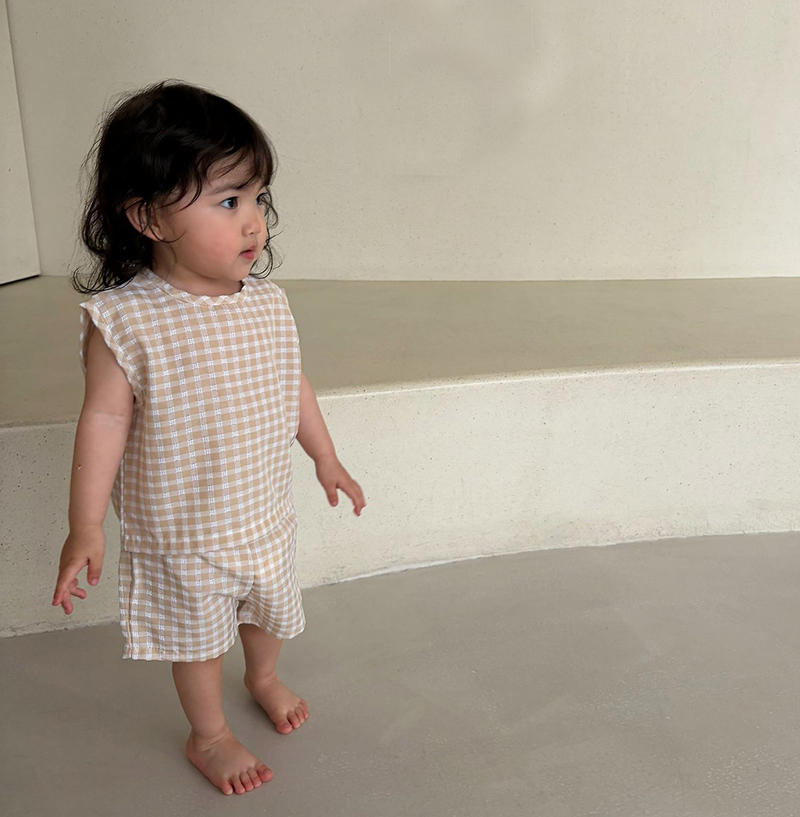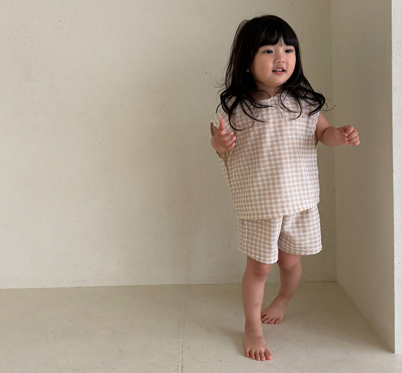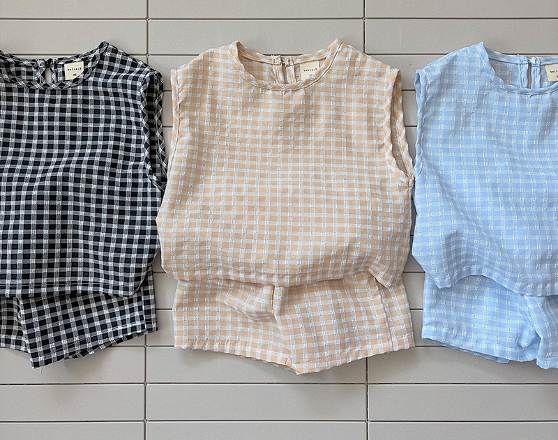 여름날 우리 아이를 더 시원하고 귀엽게 만들어줄잔잔한 체크 패턴 상하세트 소개해드려요 :)