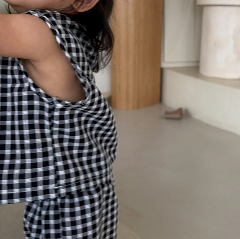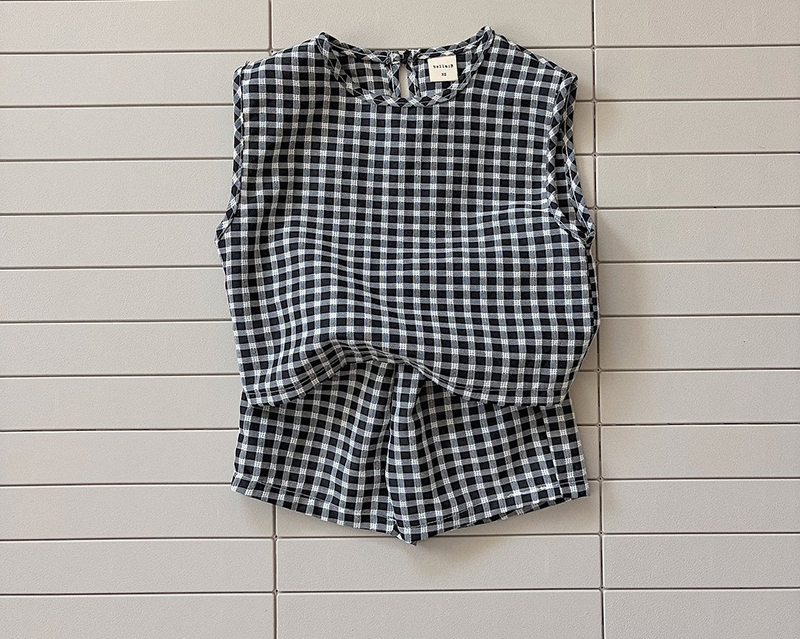 🌿 가볍고 사랑스러운 체크 상하세트 (민소매+반바지) 🌿